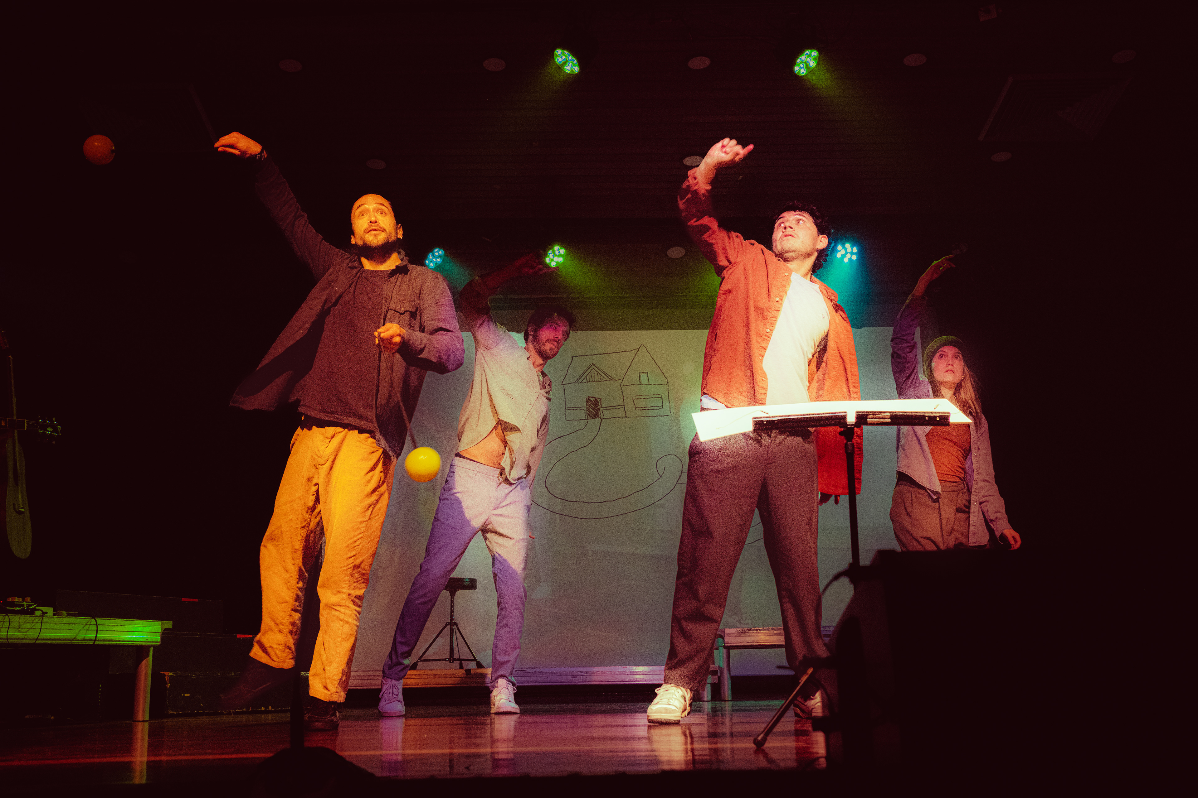 Registro fotográfico de el performance "SOUNDPAINTING MINIMAL" de improvisual project, el cual reúne actores, bailarines, artistas circenses, ilustradores y músicos quienes nos mostraron la creación en vivo de una obra única e irrepetible.